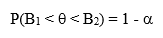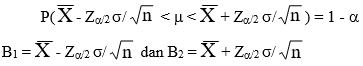 B1 dan B2 masing-masing disebut batas kepercayaan bawah dan atas. B1 dan B2 didapatkan dari hasil perhitungan.
