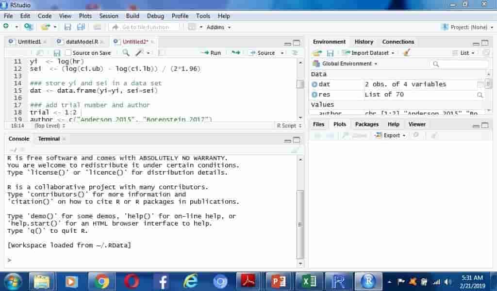 - Untuk perhitungan yang lebih kompleks, perintah-perintah R ditulis lebih dahulu dalam text editor, kemudian dijalankan