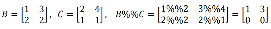 Hal ini karena jumlah elemen dari matriks B pada baris ke-1 sebanyak 3, sementara jumlah elemen dari matriks D pada baris ke-2 sebanyak 2. Selanjutnya, perintah R C[c(1),] <- D[c(2),] berarti mengganti elemen-elemen matriks C pada baris ke-1, dengan elemen-elemen pada matriks D, baris ke-2.