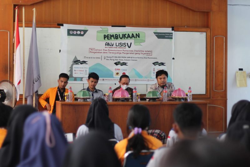 HMPS Statistika FMIPA UNM menggelar pembukaan Aksi Nyata Ilmiah Mahasiswa V (ANALISIS V) pada hari Jumat, 22 Juli 2022 di Gedung FF 104-105 FMIPA UNM yang dibuka langsung oleh Drs. H. Sukri Nyompa, S.H., M.Si., Ph.d. selaku Wakil Dekan Bidang Kemahasiswaan dan Alumni FMIPA UNM. Kegiatan ANALISIS V mengusung tema “Aktualisasi Jiwa Kemanusiaan Mahasiswa Statistika...Read More