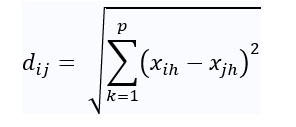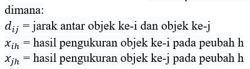 1. Hitung matriks jarak dengan menggunakan jarak Euclidean.