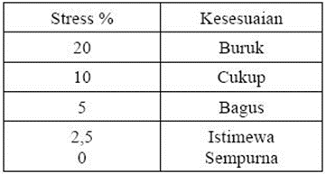 Semakin kecil nilai STRESS maka hubungan monoton yang terbentuk antara ketidaksamaan dengan disparities semakin baik (didapat kesesuaian) dan kriteria peta persepsi yang terbentuk semakin sempurna.