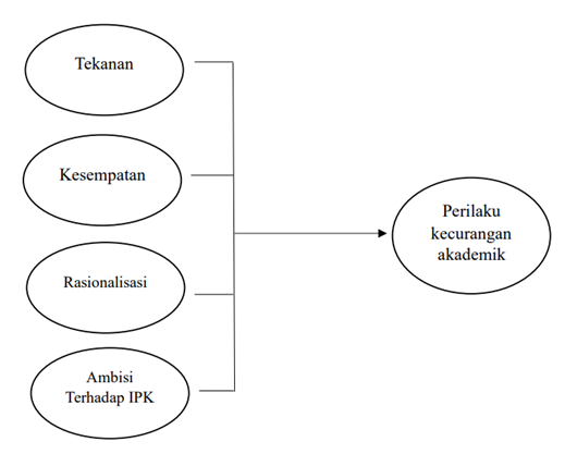 Kecurangan sering kali dipengaruhi oleh tiga faktor utama, yaitu tekanan, kesempatan, dan rasionalisasi. (1)Tekanan muncul ketika individu menghadapi dorongan, baik dari aspek finansial, non-finansial, maupun tekanan pribadi, yang memotivasinya untuk melakukan kecurangan. (2)Kesempatan terjadi akibat kelemahan dalam sistem atau situasi yang memungkinkan seseorang melakukan kecurangan tanpa terdeteksi dan tanpa sanksi, sering kali dengan memanfaatkan keahlian yang dimilikinya. Semakin besar peluang tersebut, semakin besar pula kemungkinan terjadinya kecurangan. (3)Rasionalisasi adalah proses di mana individu mencari pembenaran atas tindakannya sebelum melakukan kecurangan, sehingga merasa bahwa perbuatannya dapat diterima meskipun sebenarnya salah. Ketiga faktor itu disebut dengan istilah fraud triangle yang mendasari seseorang melakukan kecurangan. Namun selain ketiga faktor tersebut, terdapat faktor lain yang dapat mempengaruhi seorang mahasiswa berbuat curang yaitu ambisinya terhadap IPK. Mahasiswa biasanya menginginkan nilai IPK yang sempurna dan akan menghalalkan segala cara untuk mendapatkannya.