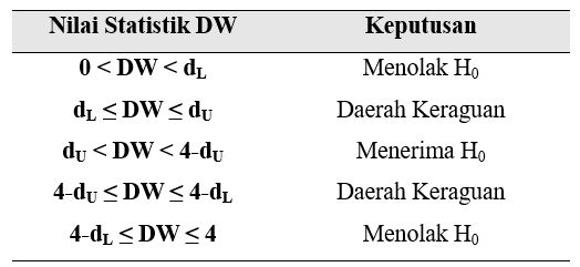 Tabel 1 Kriteria Pengujian Autokorelasi dengan Uji Durbin-Watson