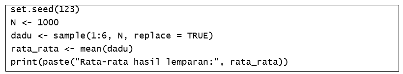 Jadi, kita menghitung rata-rata hasil lemparan dadu 6 sisi secara empirik, dengan proses sebagai berikut: