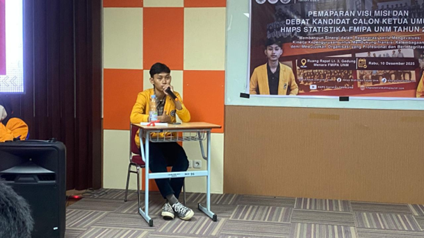Salah satu rangkaian kegiatan dalam Musyawarah Mahasiswa X (MUMAS X) telah terlaksana, yaitu agenda Pemaparan Visi Misi serta Debat Kandidat Calon Ketua Umum HMPS Statistika FMIPA UNM Tahun 2026.