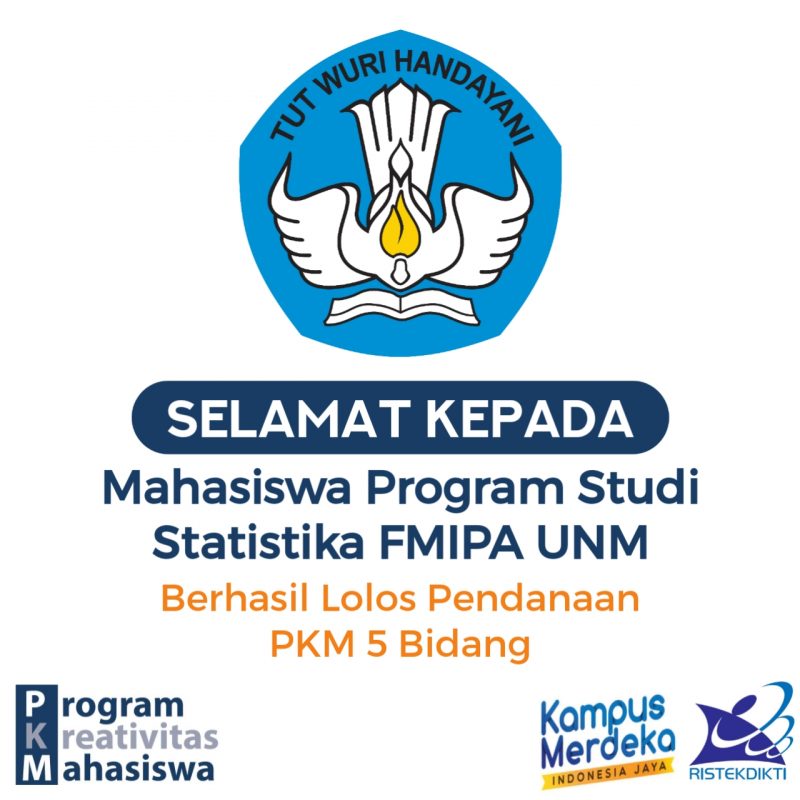 Pengumuman mengenai pendanaan PKM 5 Bidang dan Gagasan Futuristik Konstruktif (GFK) telah diumumkan Kemdikbud-Dikti melalui laman https://simbelmawa.kemdikbud.go.id/portal/pengumuman-pendanaan-pkm-2021-dikti/. Tercatat bahwa Program Studi Statistika tahun ini berhasil meloloskan PKM skema Riset Eksakta. Ini merupakan prestasi yang membanggakan bagi seluruh elemen dan tenaga pendidik di Program Studi Statistika, terlebih kepada Ketua Program Studi Satistika. Adapun judul yang diusulkan dan...Read More